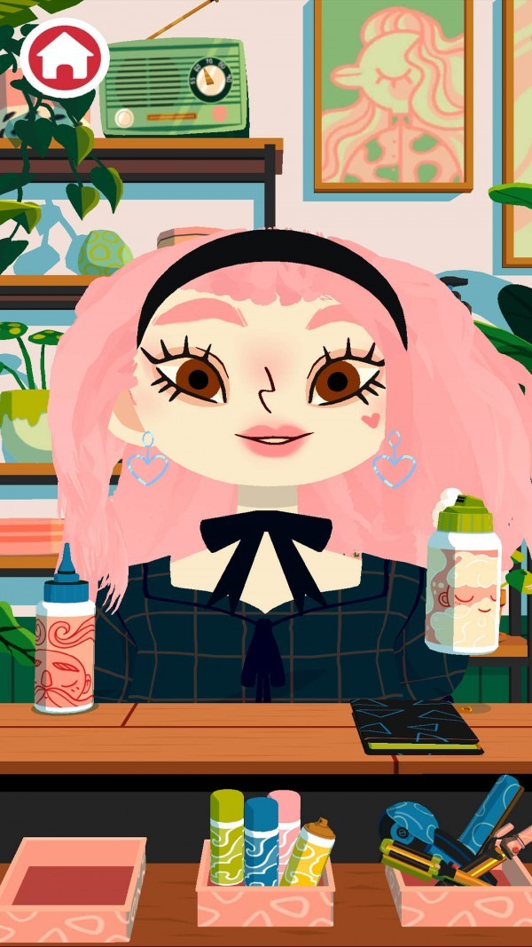 1.这里有五彩缤纷的颜色瓶,玩家可以随意选择,将公主的头发染成彩虹色都可以,将你的创意展现出来。
