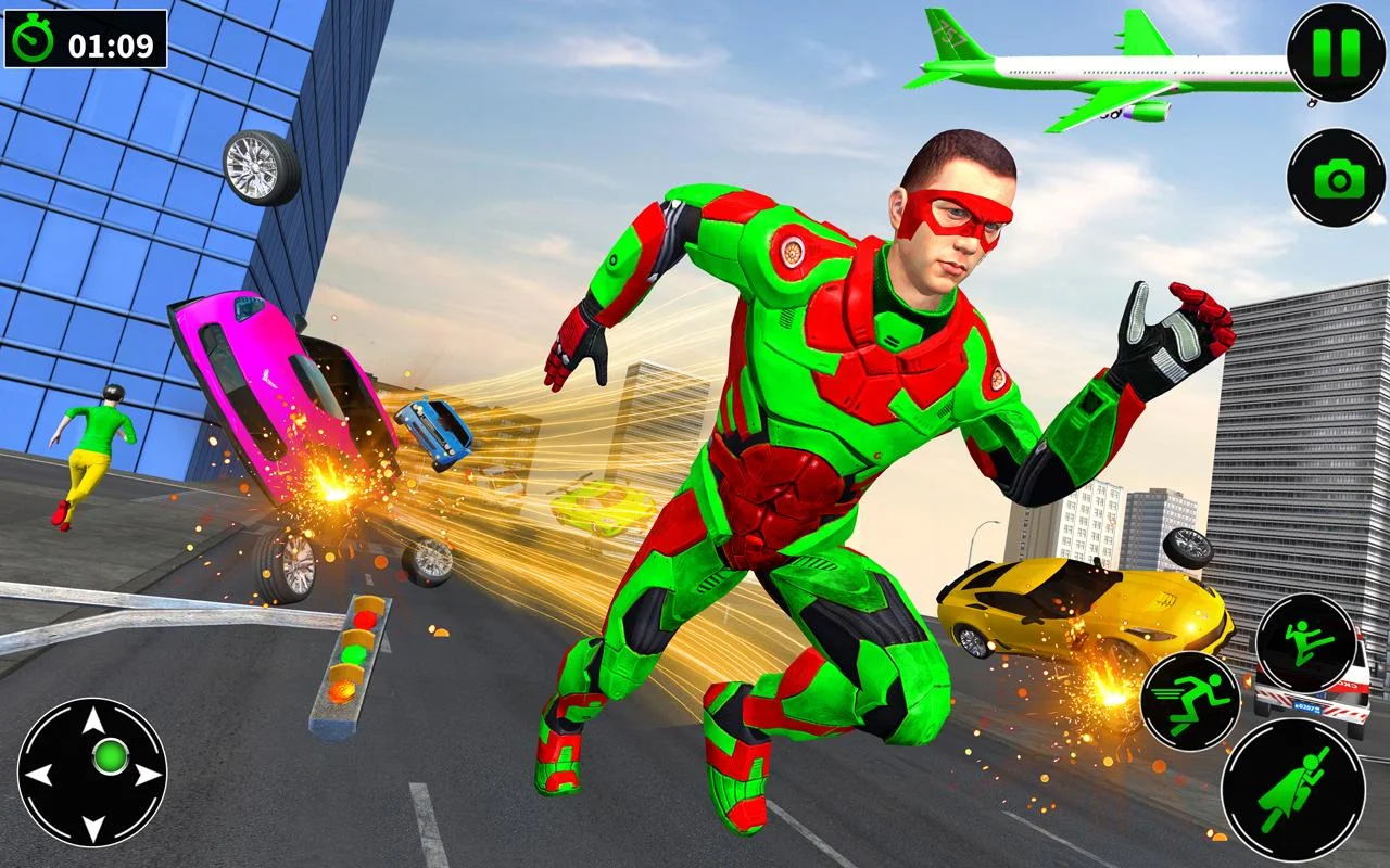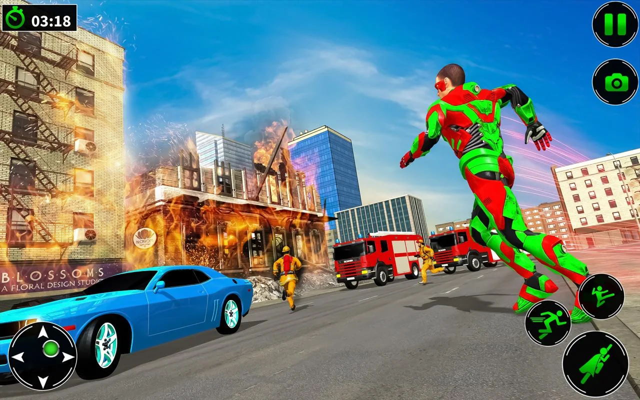 控制英雄在城市的上空到处飞行,然后拯救更多的人类与水火之中,完成各种成就。
