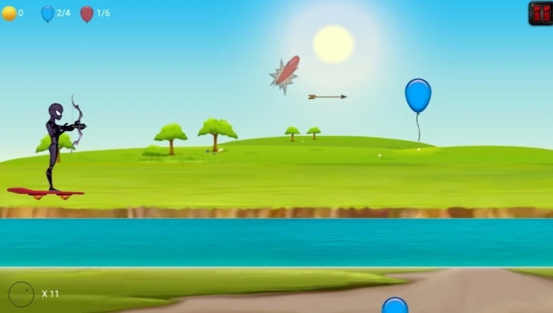 3、外星人弓箭和气球游戏内你可以利用弓箭射击出现的气球获取积分。
