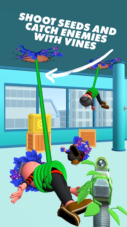 3、3D建模,简单有趣的场景设置,新奇的枪战方式,以植物的藤蔓做武器。