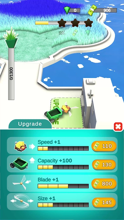 1、你通过割完所有的草坪获得奖金,然后来到界面右侧的NPC面前,升级自己的割草机。
