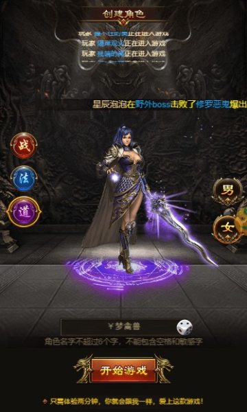 1、进入游戏就开启你的热血传奇之旅,每天只需要刷各个竞技场任务、副本。