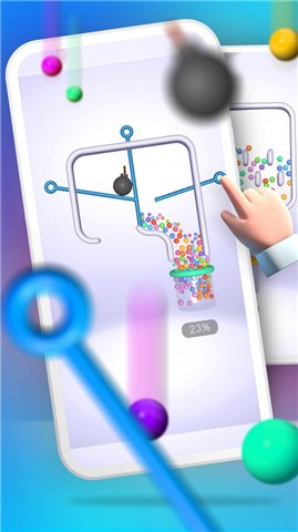 1.玩家只需要拉动栏杆,解除限制就能将球落到瓶子中。
