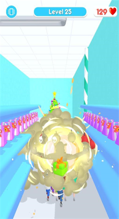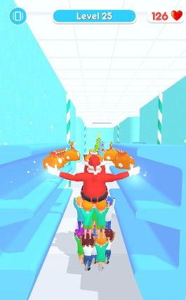 1、左右滑动屏幕改变前进方向,召集孩子们并躲避障碍搜集礼物。