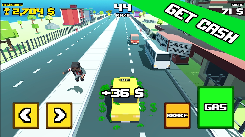 出租车疯狂之路(Crazy Road Taxi Madness),你需要不断开着自己的出租车绕城而行,护送更多的乘客到指定的地方,这样才能为自己带来更多的奖励,在运送客人的时候,一定要以最快的速度到达目的地,否则很可能会降低你的好评度,对最终的奖励结算影响很大,心动就来下载吧~