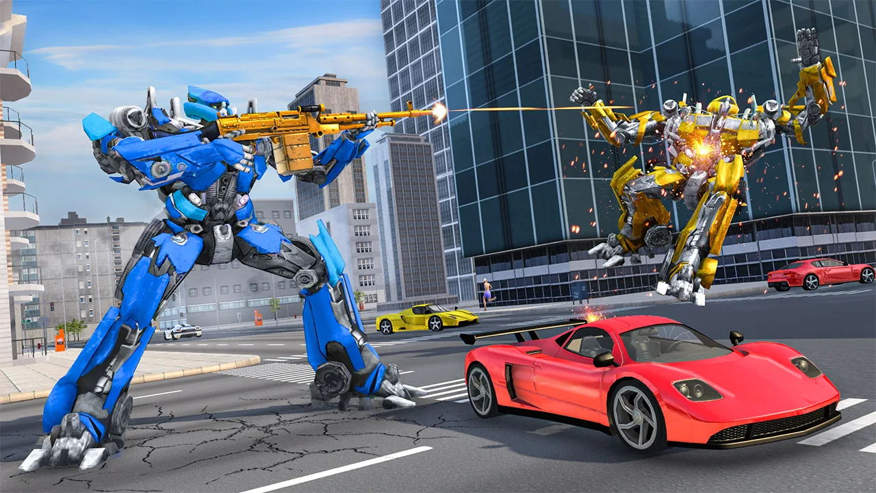 2、享受汽车人带来的震撼感觉,穿梭于城市街道感受惊心动魄的街机竞速战斗。