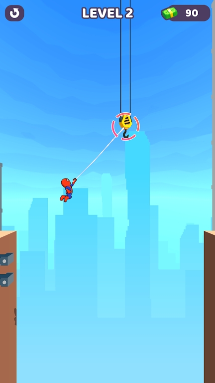 你需要灵活的去控制自己的角色,借助蛛网等工具去进行闯关。