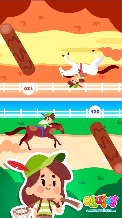 1、赛马:按前进按钮奔跑和跳跃以避开障碍物。