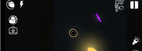 2、滑动界面右下角控制电筒照射方向,也可以理解为视野。界面左侧分别是血量和电量。