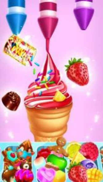 3、着自己想法做各式各样的雪糕,也可以按照游戏的指引来做,完全看自己的意愿。