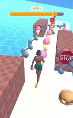 2、你要尽量搜集哑铃等增强体质的道具,避免汉堡薯条等让自己长胖的垃圾食品;