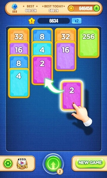 1、非常适合休闲游戏的减压和放松,只需将同一个卡片组合在一起即可合成新的卡片;