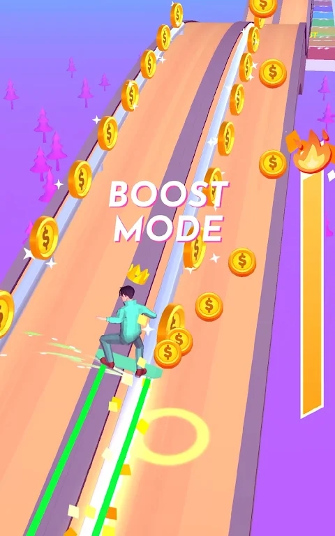 1、一款拥有跑酷玩法的全新滑板竞速休闲手游,踩着你的滑板在一条充满弯曲的跑道上;