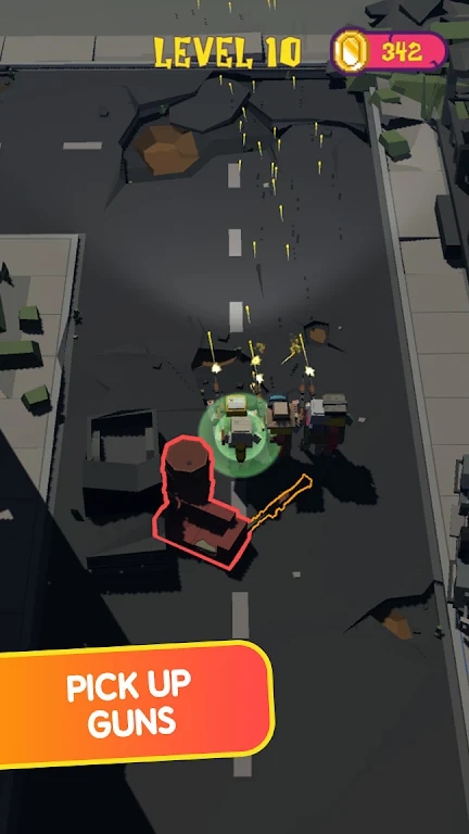 2、边后退边打僵尸,且自动射击,只需一根手指就能玩;