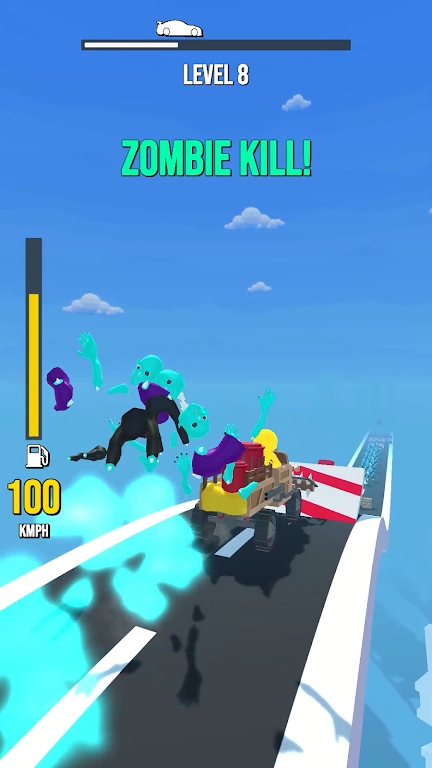 2、好在道路上有很多的汽油,收集它们,继续碾压僵尸,直到直到终点;