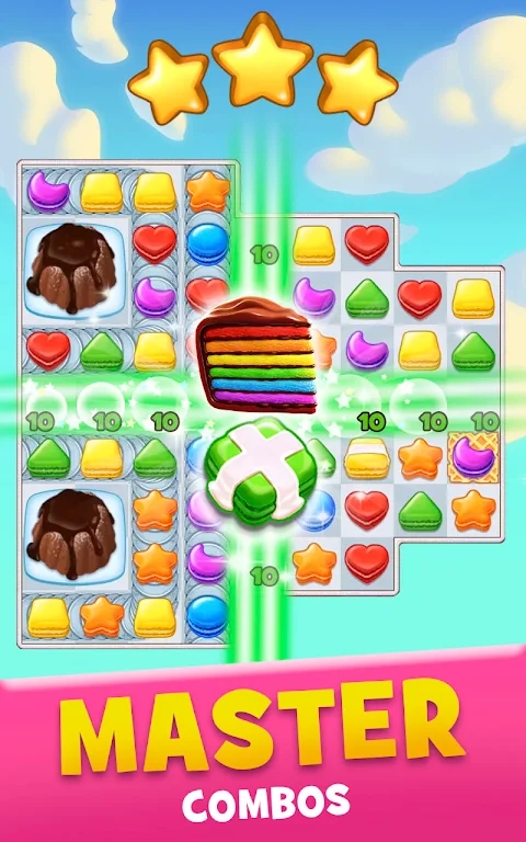 连接相同的糖果进行消除,搭配4个或4个以上相同的糖果,还有很多惊喜奖励