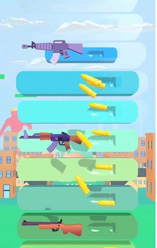 2、在一条跑道上收集子弹,收集的越多,给你分配的枪支就越强大。