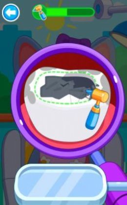 2、为小动物们清理牙齿,清理道牙齿散发出小星星才算结束,并更换下一个道具。