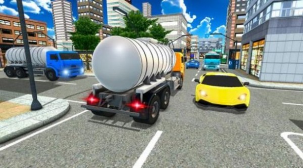 城市油罐车驾驶模拟游戏中将油安全的运输到指定的区域。