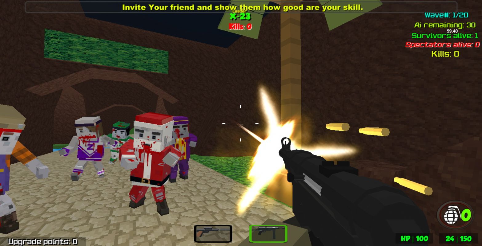 方块人僵尸模拟器游戏采用了像素风格的画面来设计的,玩家可以随时进行战斗消灭僵尸完成任务。