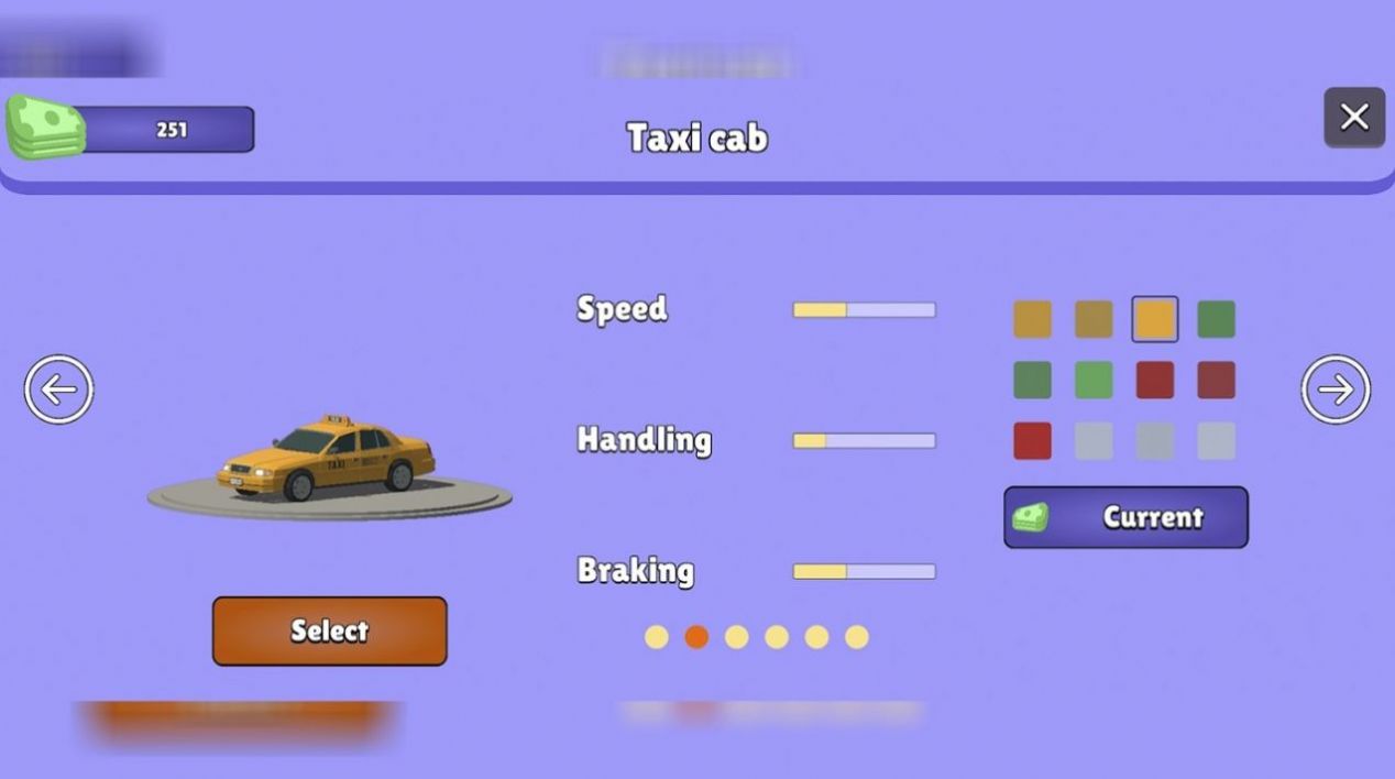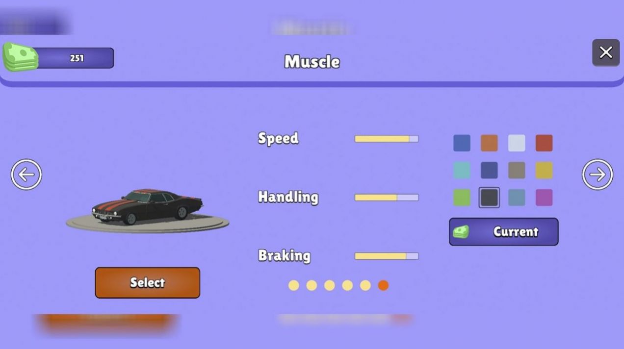 2、汽车的颜色款式可以自由的选择,前提需要相应的金币解锁。