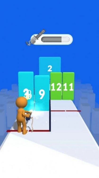 左右滑动屏幕控制角色移动,进行躲避和搜集,走到数字最小的墙壁前会自动射击;