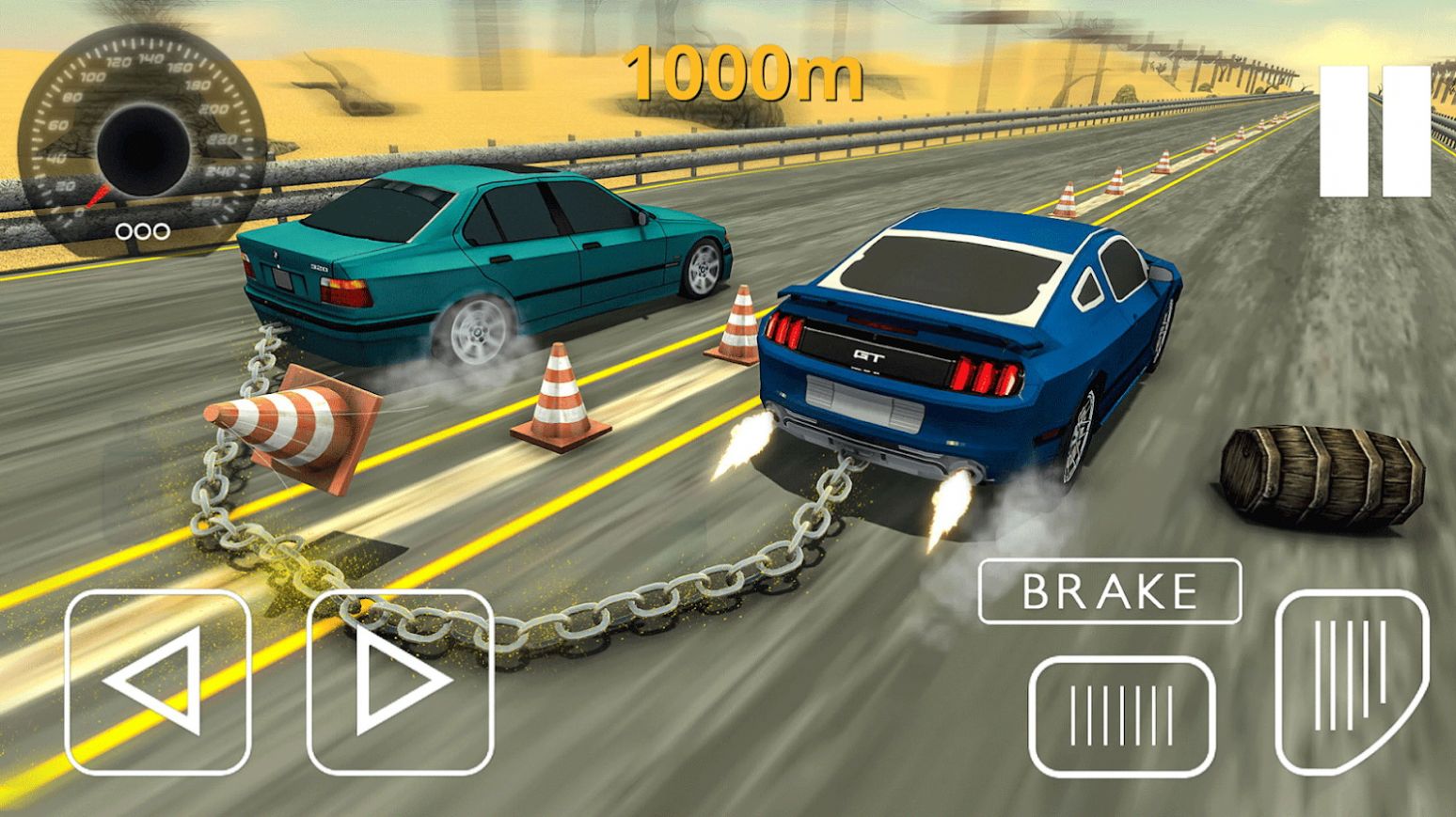 涡轮飞行模拟器游戏是一款非常紧张与刺激的赛车驾驶闯关类游戏,游戏中玩家能够驾驶属于自己的赛车,在赛道上你需要操控两辆赛车,并且赛车与赛车之间会被铁链拴住,需要玩家在面对障碍物时快速的让赛车飞行起来,躲过一个又一个的障碍物,被障碍物绊到将会损失速度。