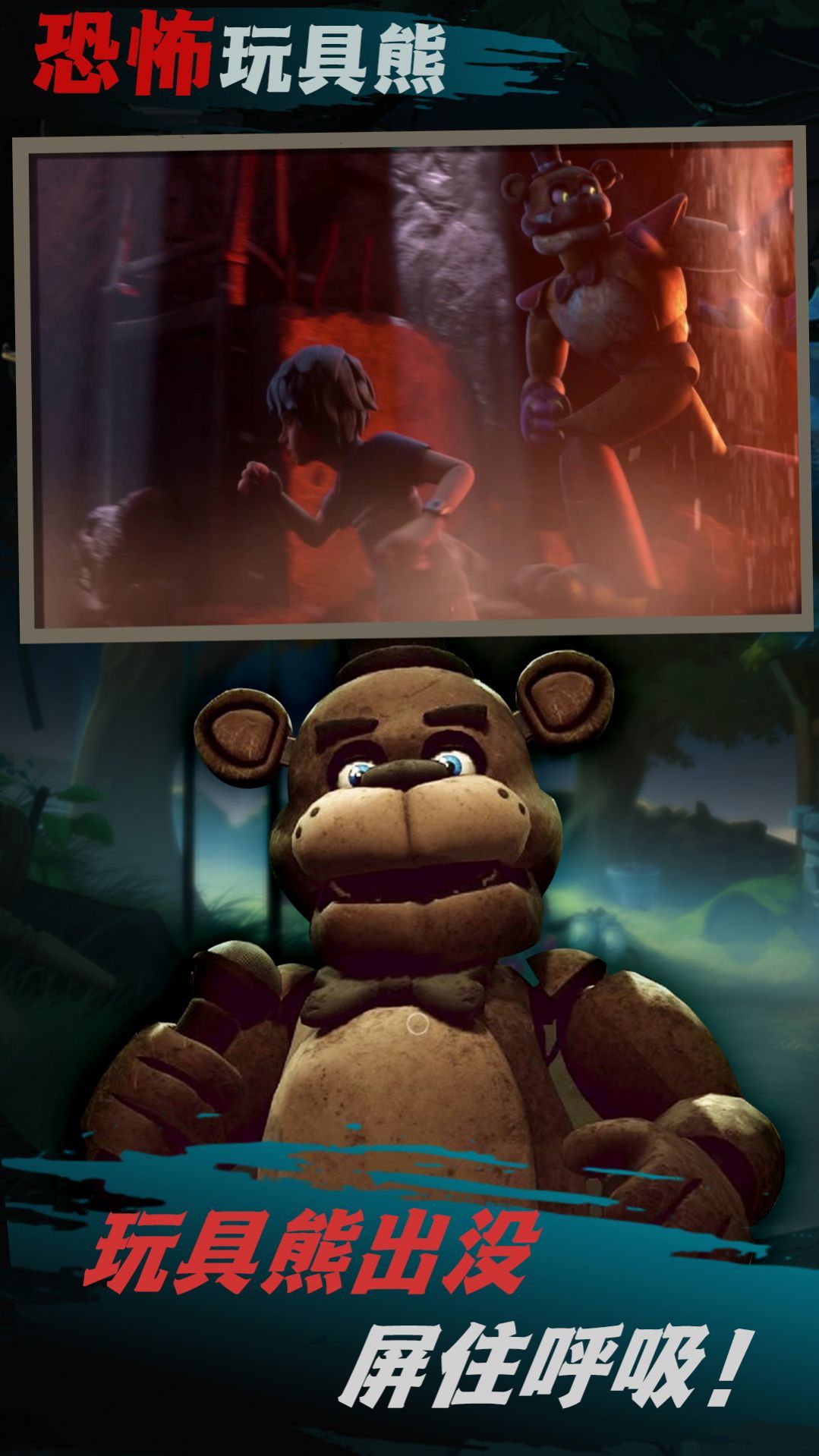 2、玩具熊的出没会伴随着可怕的特效和非常恐怖的音效配乐;