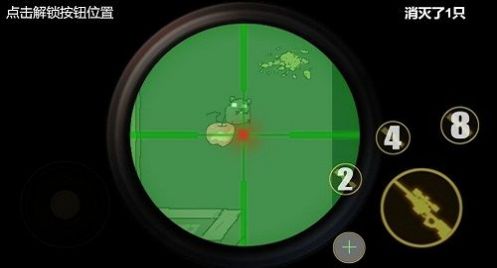 冷静分析自己的状况,粮仓属于你的保护场,拿起你手中的阻击枪来射杀可恶的小老鼠