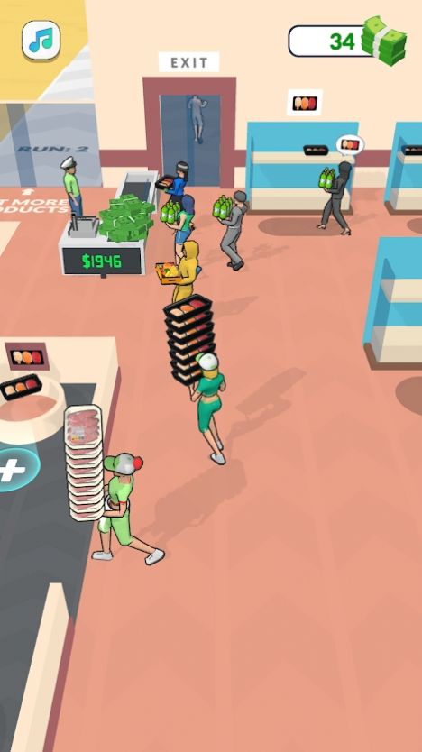 在游戏中卖货来赚钱,你可以赚取一大笔钱,升级自己的超市更加轻松。