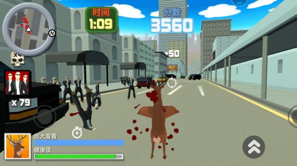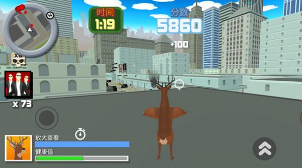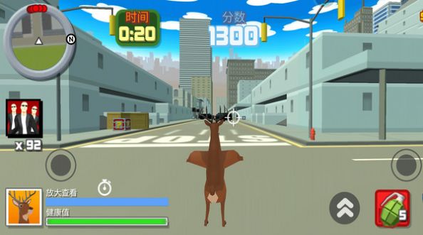 你将能尽情的在这里玩耍并让你玩的开心,成为疯狂的鹿并能够在城市中自由的探索;