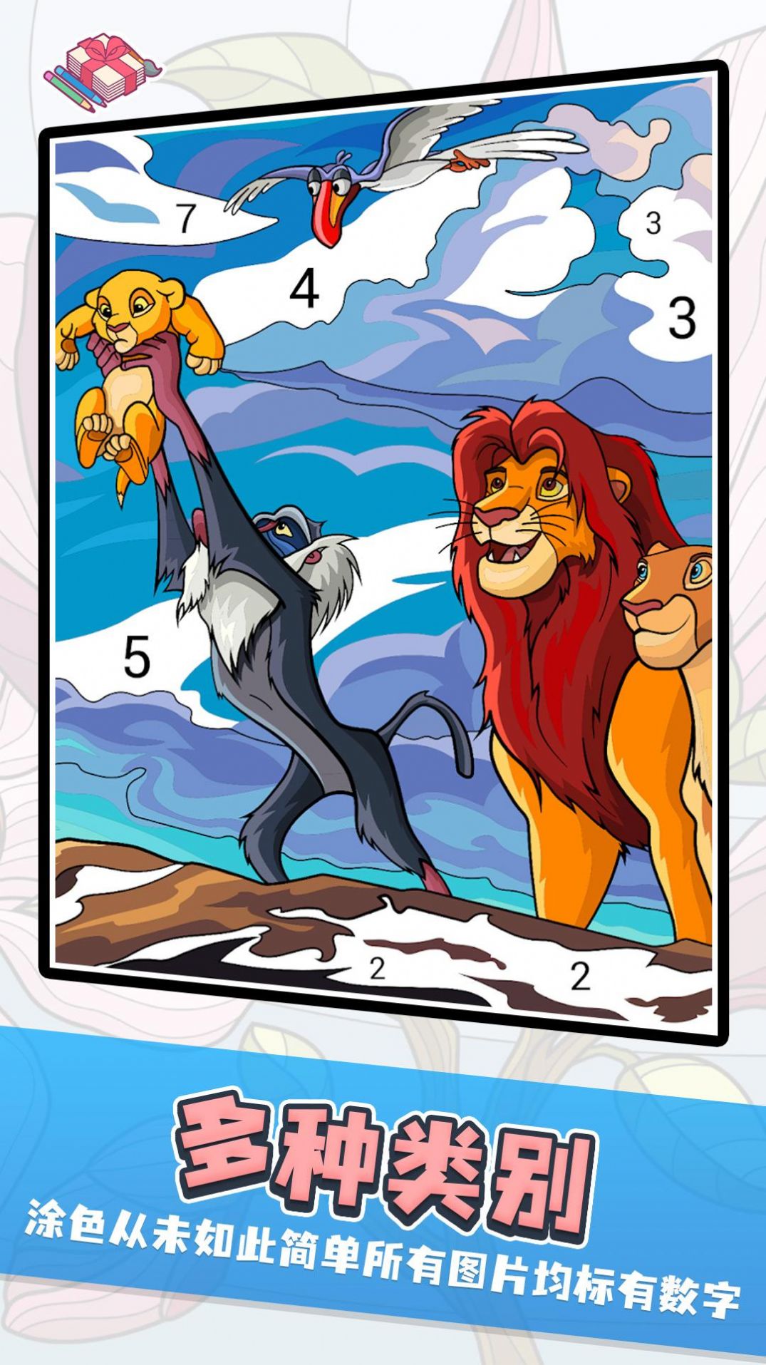 3、是填色涂色系列的画画游戏,老少皆宜,所谓数字填色就是根据数字编号进行填色。