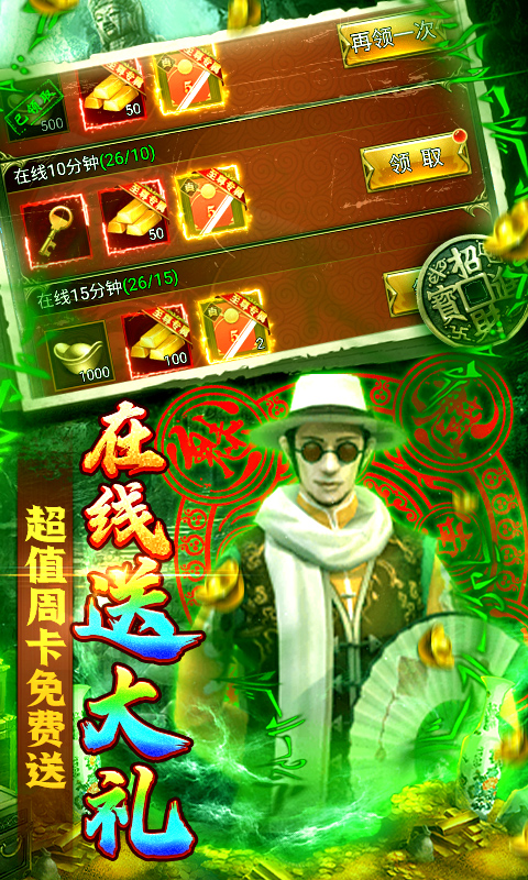 上线即送满级VIP10,2022充值卡,188888元宝,绝版称号!超多福利送不停