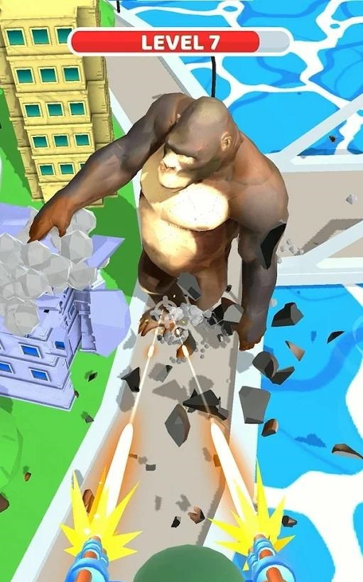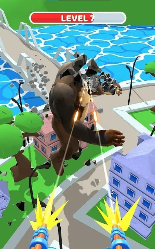 2、随意滑动屏幕瞄准巨兽射击,保护城市就能获胜,解锁武器。