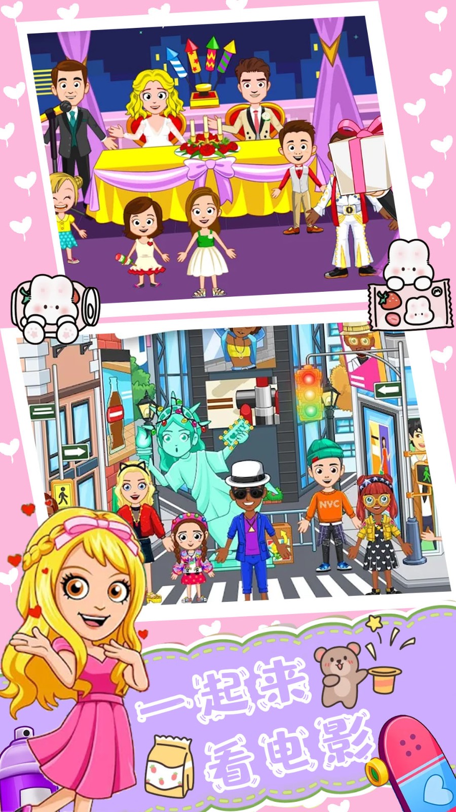2.可以根据自己喜欢的房屋风景来进行装修房子,还可以打扮你的卡通明星参加舞会