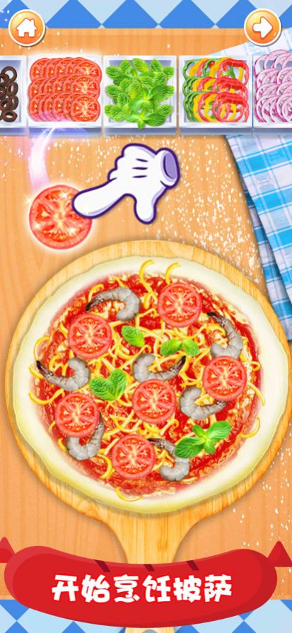 2、当下你除了要制作出各种口味的披萨外,玩家你还要制作出合适的造型。