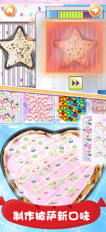 在游戏中制作披萨更加轻松,根据自己的心情来制作出不同口味的新披萨。