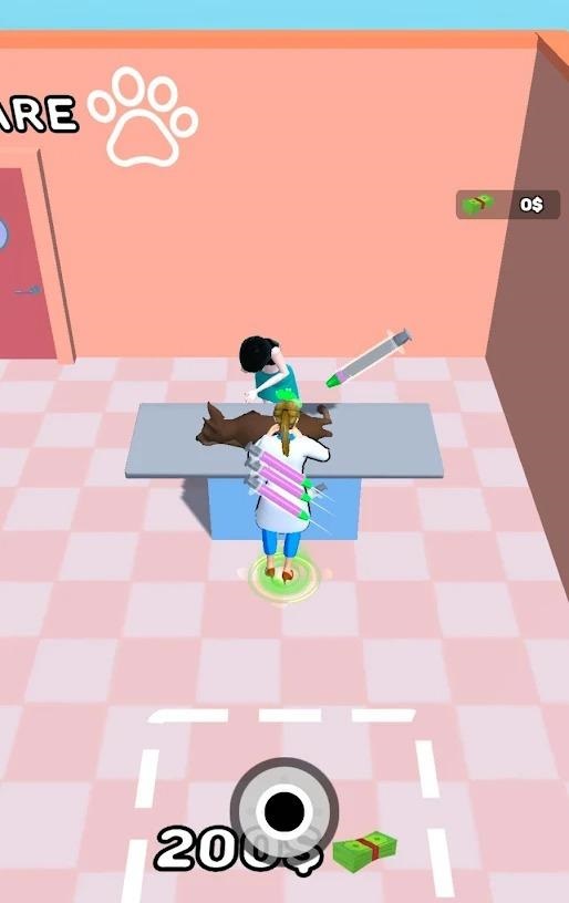 然后获得注射器,给宠物注射,再到收银台开药等获得另一份资金;