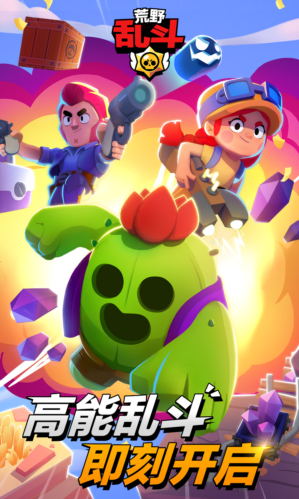 《荒野乱斗》是一款快节奏的竞技卡通游戏,游戏中提供超多奇葩英雄等你来选择,不同英雄有着不同的技能,简单的技能更考验走位和预判,十分考验玩家的操作技巧。游戏拥有海量地图等你来解锁体验,游戏还会出现限时的对抗及合作模式等您挑战。快来下载游戏与你的好友来一场紧张刺激的3分钟对局吧。