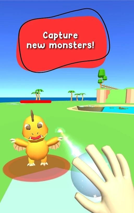 长按并滑动屏幕,发射激光射线,射击怪兽一段时间后就能收服怪兽;