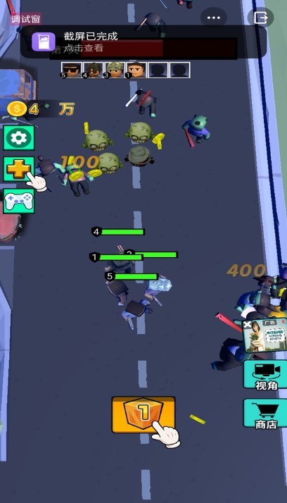 2.点击或长按右下角的虚拟键,射击并击败僵尸潮。