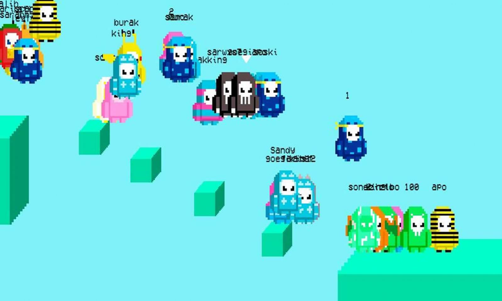 1、怀旧像素风的敏捷类游戏,玩家将在游戏中扮演一个蓝色糖豆人跟众多糖豆人一起往下跳;