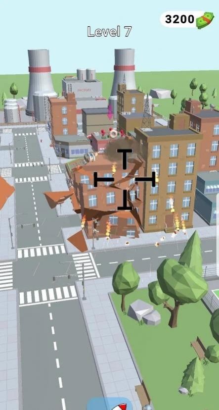 游戏画面比较精简,但是玩法是十分解压的,你会在这座城市投掷炸弹,炸碎的特效以及音效都是十分解压的。