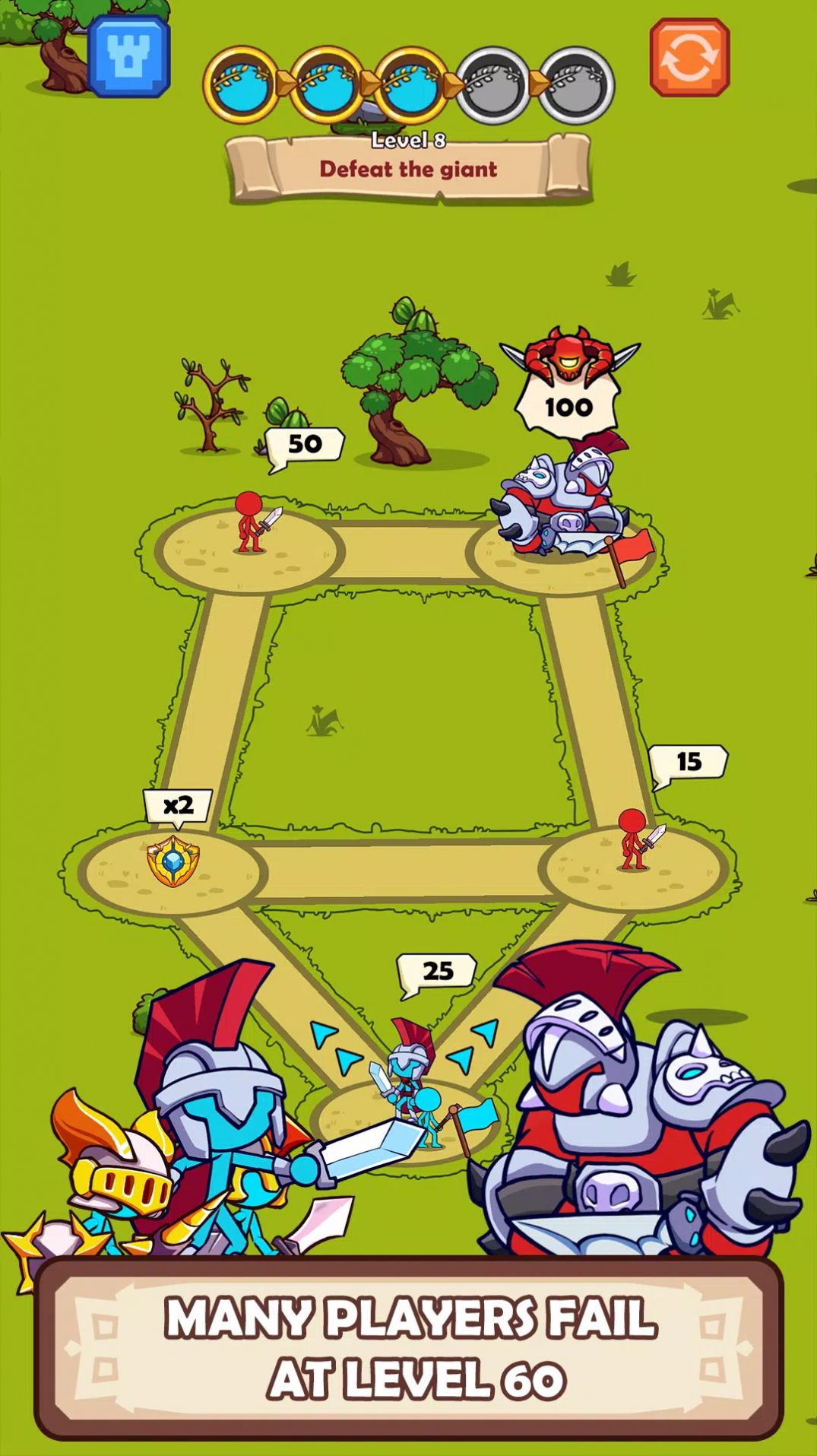 大量的火柴人可以进行操控,不同的火柴人有着不同的战斗能力的呢。