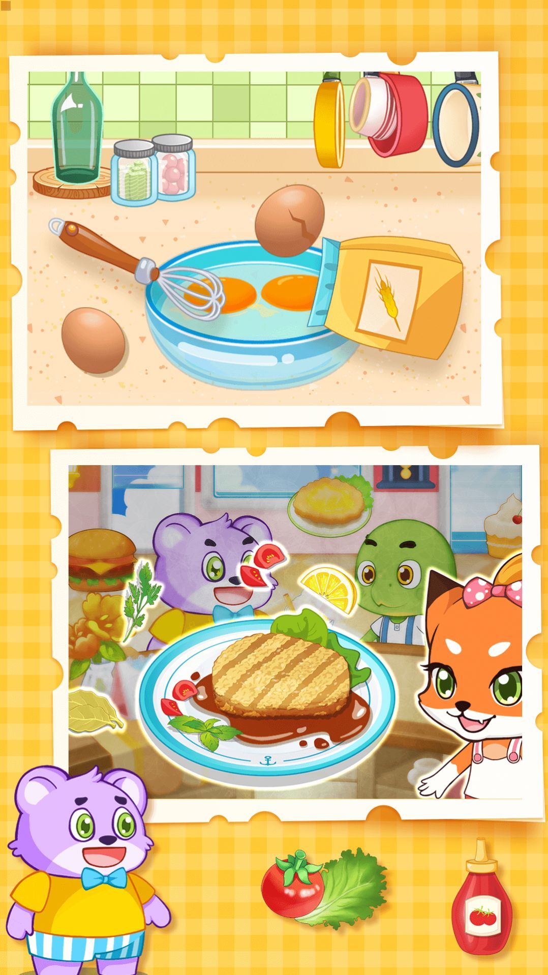 2、卡通风格的画面适合任何人,只要你喜欢烹饪就可以来这里体验一下;