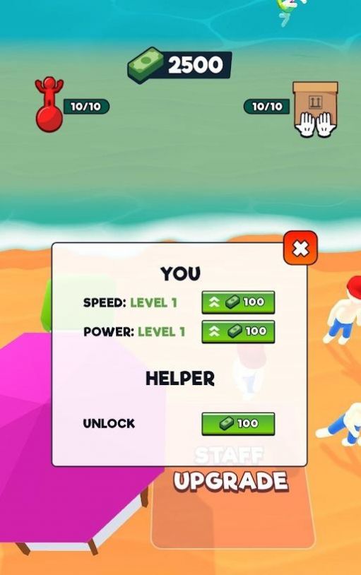 3.想要吸引客人来你的沙滩上玩,那么你就只能疯狂的解锁沙滩的各种项目,才会有机会爆满。