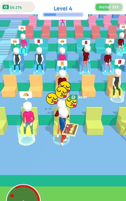2、操作的方式是拖动形式的,所以玩家在游戏中的操作是一览无遗的,根据需求走到适合的顾客边;