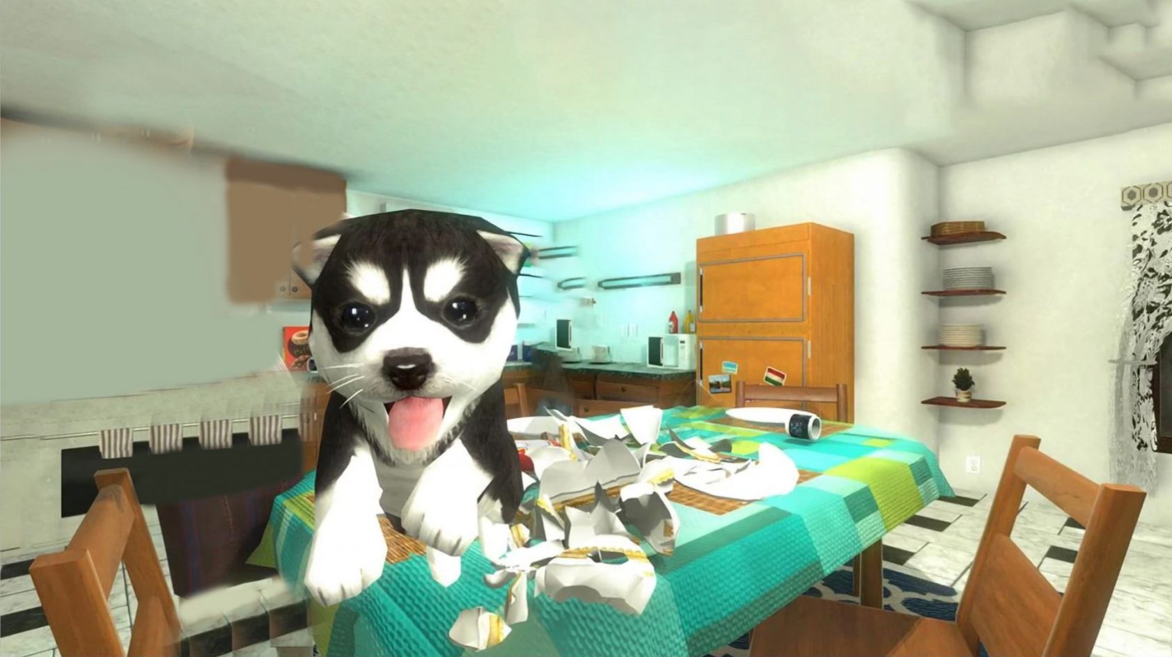 变身可爱小狗自由的跑来跑去,把东西打翻,破坏物品。