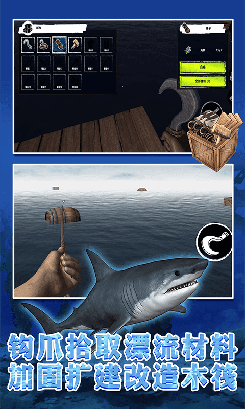独特的游戏玩法困难的生存大挑战,玩家们不再是进入孤岛,而是在脆弱的木筏上生存;