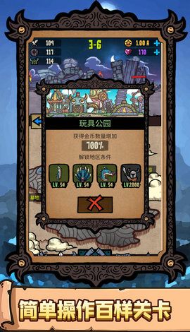上百道关卡,解锁更多的区域提升你的金币收益。